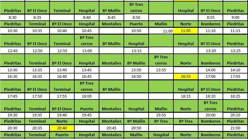 A partir de Ayer Jueves 28 ya están vigentes los nuevos horarios para los recorridos de los Barrios y el Puerto.