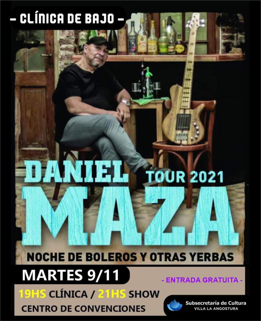 Desde Cultura de Villa la Angostura, invitan a participar de una clínica de bajo el 9 de noviembre a las 19 hs que dictara el destacado bajista y compositor uruguayo Daniel Maza quien interpreta boleros, candombes y salsas entre otros.