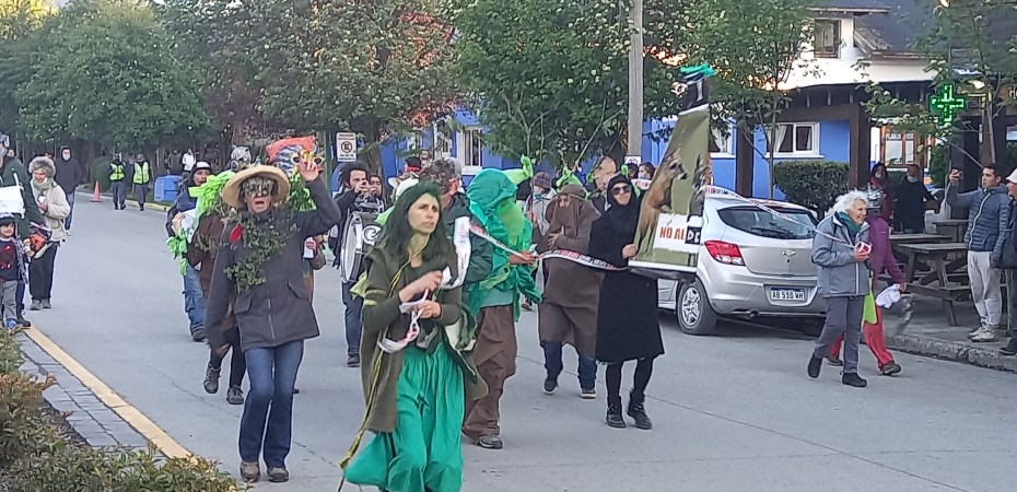 Pidiendo el cambio de la normativa local para parar los desmontes ayer batucada incluida bailaron y repartieron volantes para concientizar contra el desmonte en la localidad.