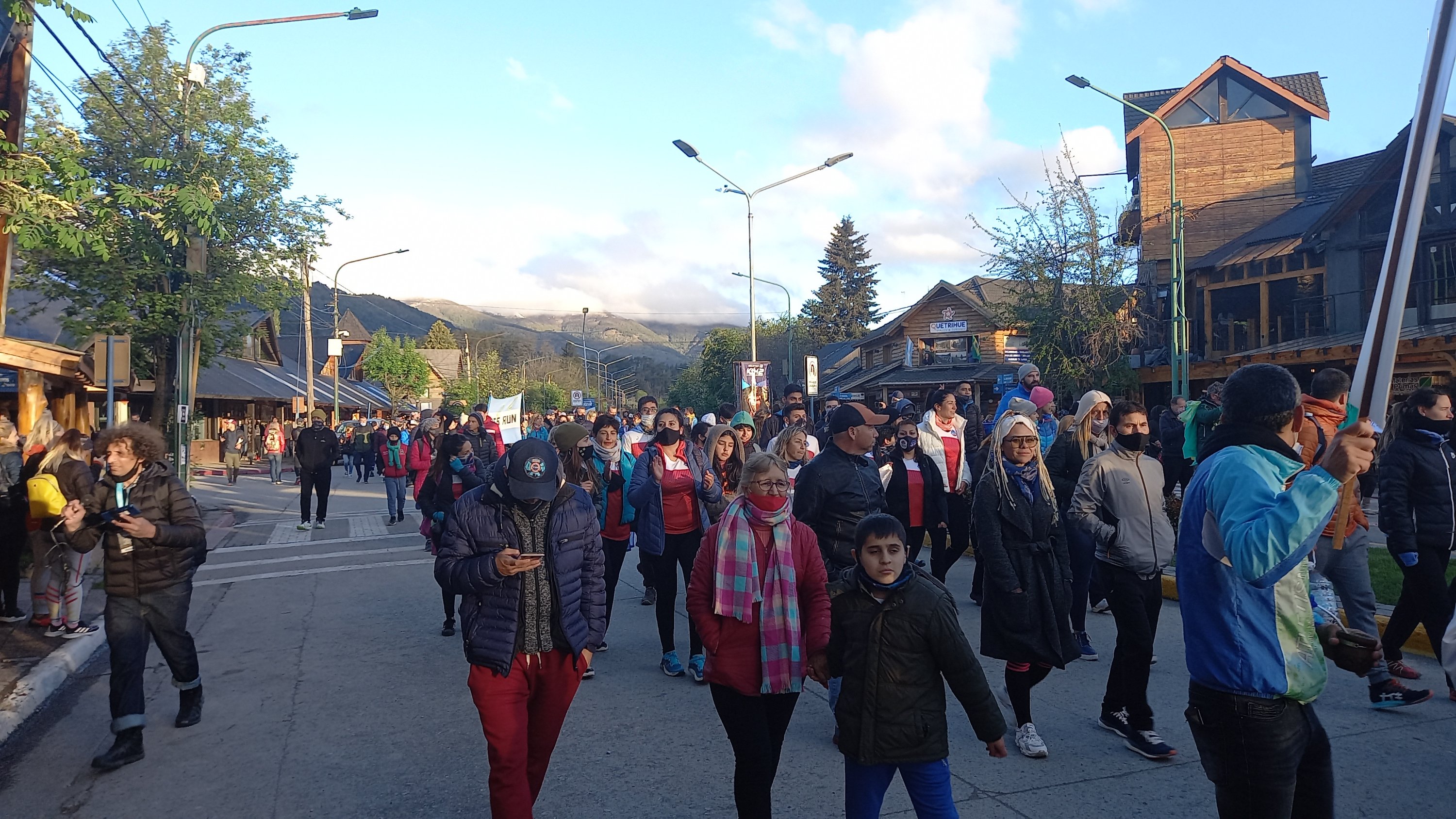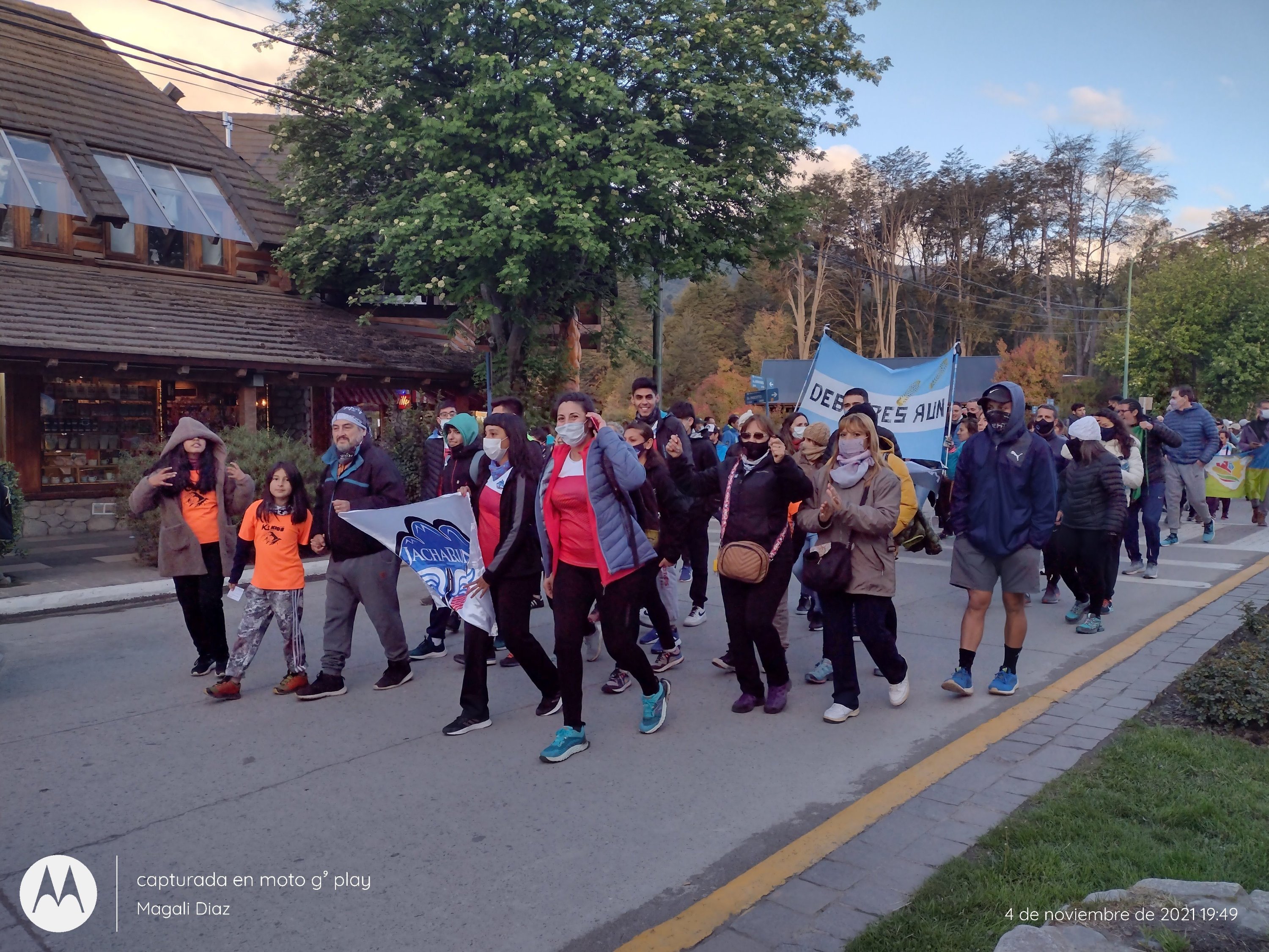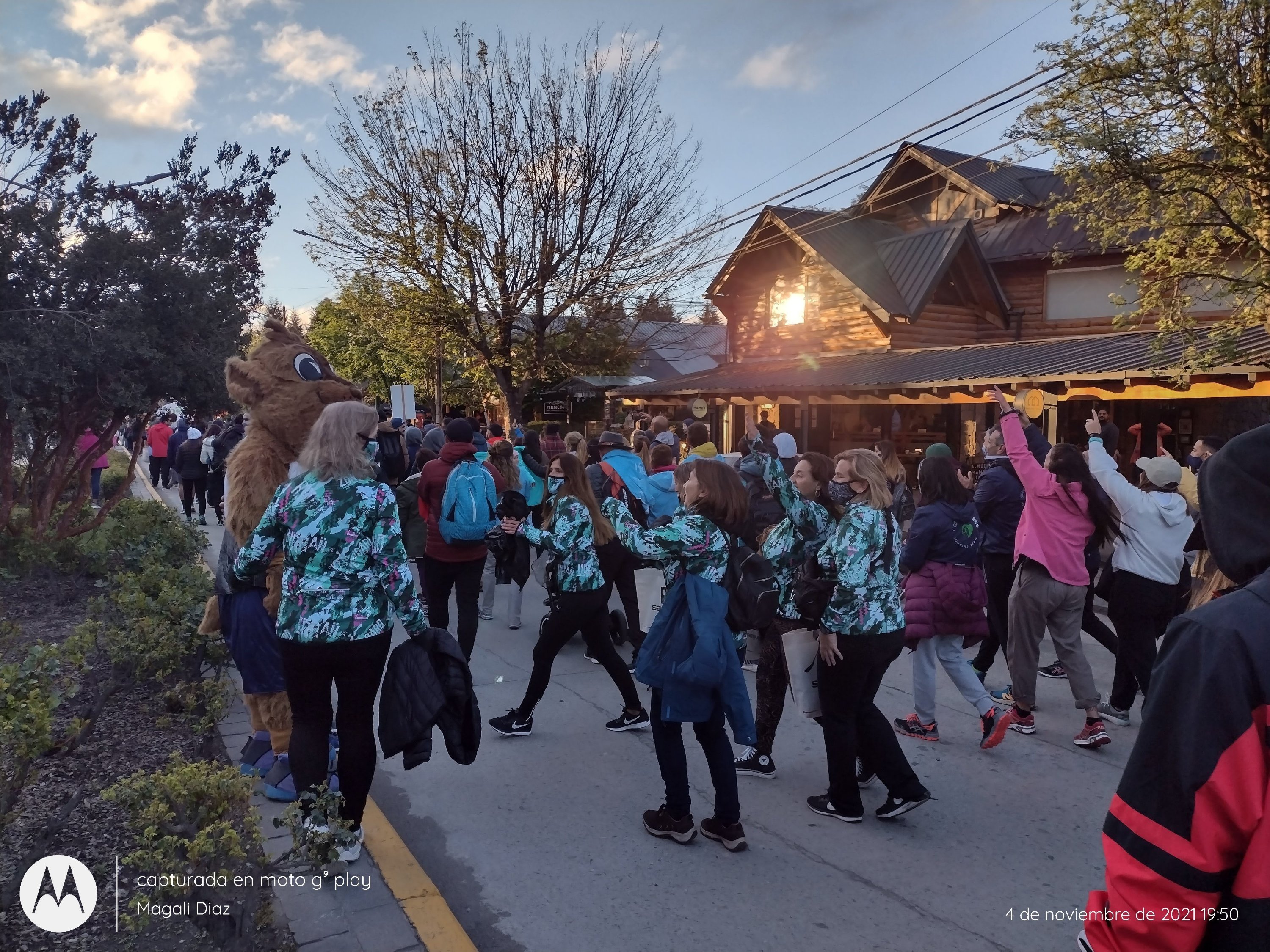Gente de diferentes lugares de Argentina y del mundo mostrando sus banderas y marchando alegremente al ritmo de la música.