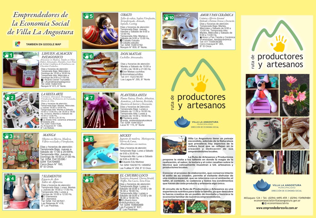 Como se explica y se muestra de forma muy cuidada, en la pagina www.villalaangosturaturismo.gob.ar/atractivo/ruta-de-productores-y-artesano conocer el proceso de elaboración, que conserva intacto el estilo de su creador, permite al visitante disfrutar de una mística especial, que se relaciona con el ambiente; el taller, el contexto, la cadencia y todos los condimentos que hacen de cada producto y artesanía algo único, el objetivo principal de iniciar este recorrido maravilloso.