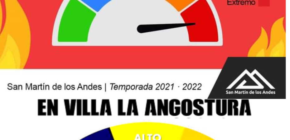 En el Caso de San Martin de los Andes cambio a las 12.00 AM de MUY ALTO a EXTREMO, Villa la Angostura la evaluación al Momento es de Riesgo ALTO, pero la situación es evaluada por personal de la brigada de incendios forestales y salvo alguna emergencia es actualizada a las 14 hs todos los días, y publicada por la gente de la Dirección de Protección Civil de Villa la Angostura.