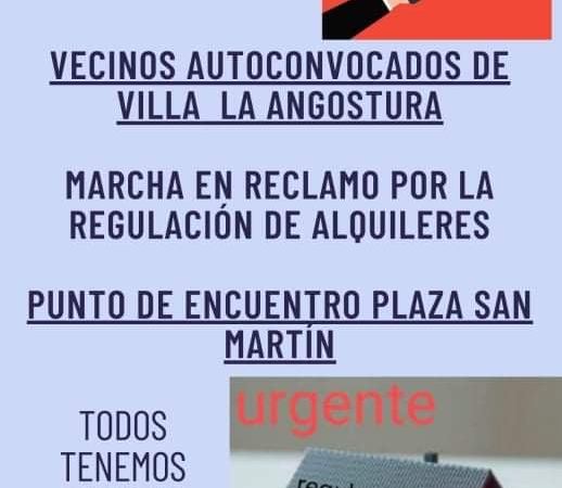 En un Comunicado de prensa convocan a una marcha el 8/12 a las 18 hs por la falta de Alquileres y piden una urgente regulación del Mercado para poder alquilar permanente en Villa la Angostura.