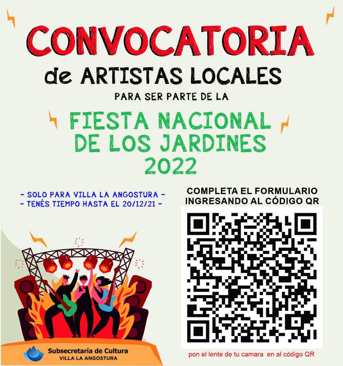 La Subsecretaría de Cultura, dependiente de la Secretaría de Gobierno, convoca a artistas locales de diversas disciplinas que quieran ser parte de la “Fiesta Nacional de los Jardines 2022”, a realizarse durante el mes de febrero próximo.
