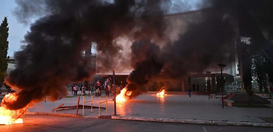 La quema de la casa de Gobierno y las protestas en las legislatura se mesclaron con el reclamo pacifico de miles de vecinos en Comodoro, Esquel Puerto Madryn y otras ciudades chubutenses.