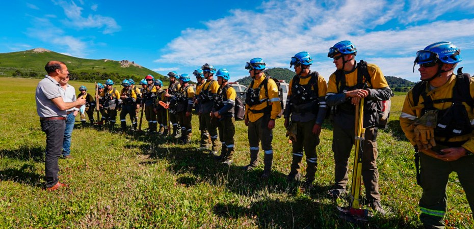 El gobernador Gutiérrez ayer luego de sobrevolar la zona en helicóptero se reunió con los brigadistas y el persona lque permanece en el área para terminar de sofocar este incendio de enormes características.