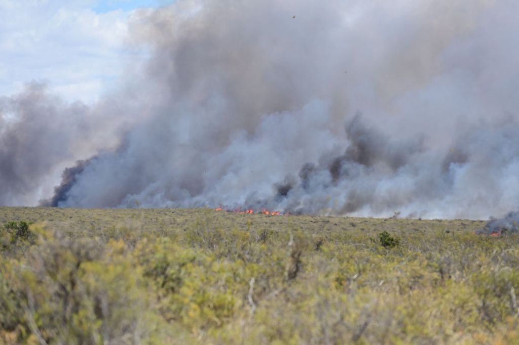 Con rafagas que superaron los 100 km/h, en la Zona norte de Madryn se inicio un incendio que afecto varias hectáreas que ardieron sin control por los fuertes vientos que afectaron la zona.