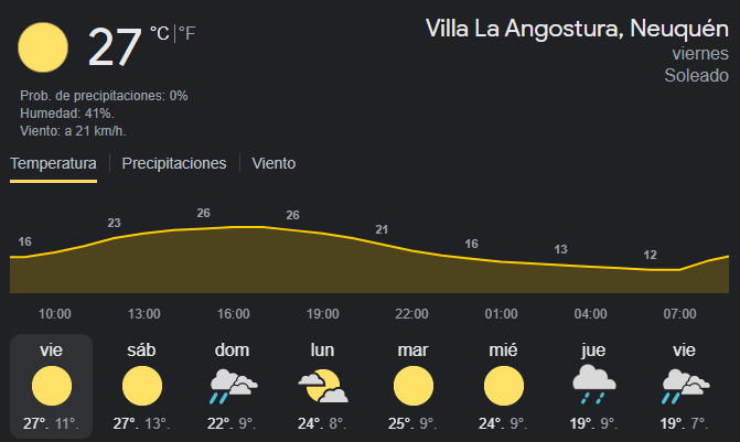 La temperatura en estos momentos es de 16 Grados, y la máxima para hoy está prevista en 27 grados.