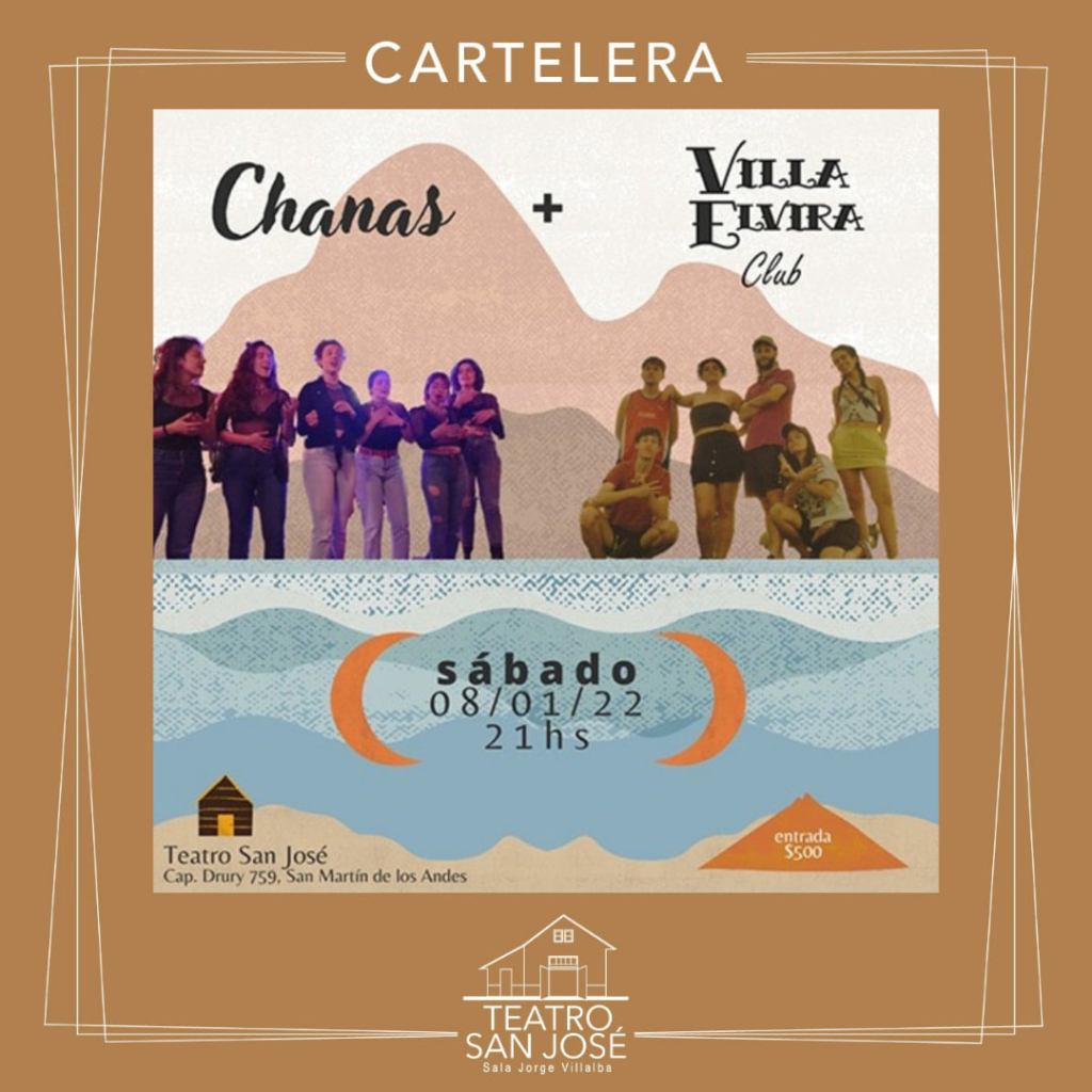 Se trata de dos bandas platenses que desde sus temas invitan a compartir el canto, el goce y la reflexión. Chanas ,a puro canto y tambó, y Villa Elvira, eléctrico y urbano, sonarán en el San José para toda persona con ganas de escuchar canciones con ritmo, fuerza y corazón.