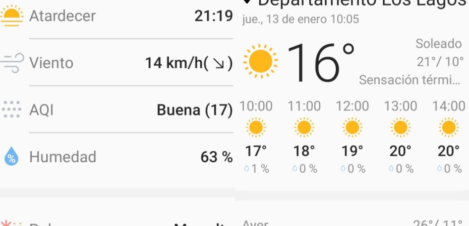 En estos momentos la temperatura es de 16 grados a las 9.30 AM, la máxima pronosticada es de 21 grados.