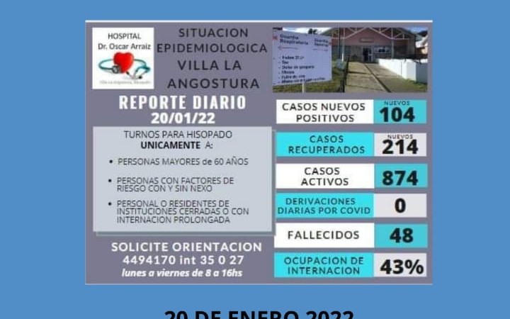 21 de enero, 202221 de enero, 2022 Opinión a Diario COVID y Vacaciones, Bajan las Camas ocupadas en el hospital de Villa la Angostura. Con un 43% declarado en el reporte oficial del día de ayer 20 de Enero. Relacionado