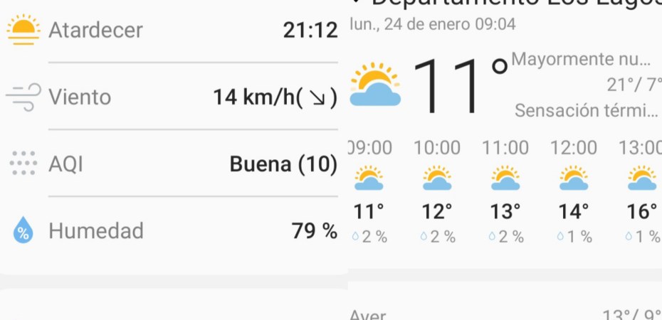 Mayormente nublado a las 9 AM, con 11 Grados y 14 km/h soplando el viento, la mañana irá recomponiendo hacia el mediodía donde se espera que salga el sol a pleno.