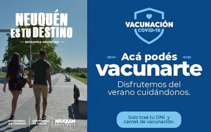 En una campaña de promoción del destino que incluye la posibilidad que los visitantes se puedan vacunar en la provincia, inclusive completar esquemas, Neuquen ofrece en su pagina oficial de turismo esta opción mas que interesante para los que quieran viajar y deban completar su esquema en plenas vacaciones o quieran vacunarse por primera vez.