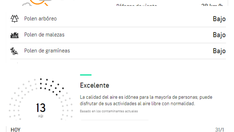El viento a 11 km/h en estos momentos y se esperan ráfagas de hasta 28 km/h, el polen para los alérgicos es bajo, y las condiciones para correr o caminar son muy buenas.
