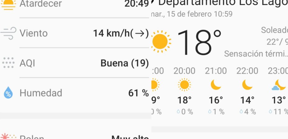18 grados la temperatura actualmente y una máxima de 22 parecería que le día se mantendrá como hasta ahora y el viento del E a 14 km/h hace que en la sombra se sienta un poquito el fresco.