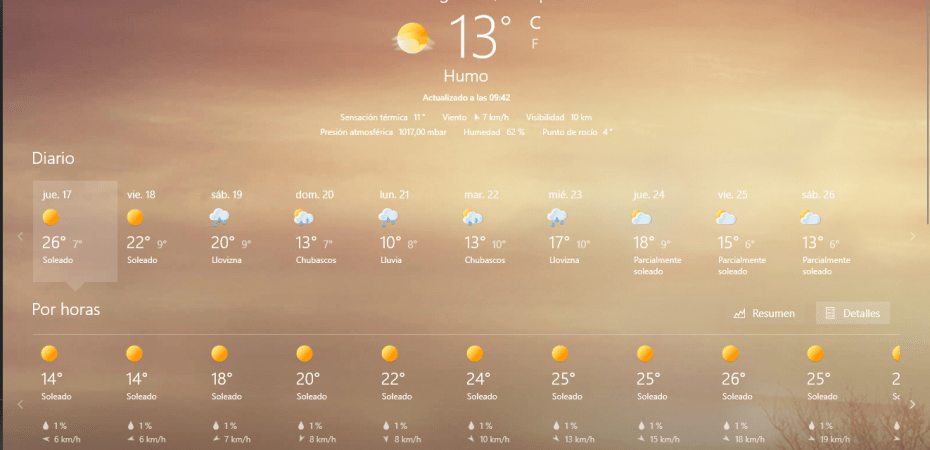Este jueves 17 de Febrero nos recibe con sol en el cielo, se percibe un poco de humo en el ambiente que puede ser producto sobre todo de los incendios forestales en chile que se encuentran fuera de control, un poco fresca la mañana pero todo indica que ora subiendo la temperatura a medida que avance el día.
