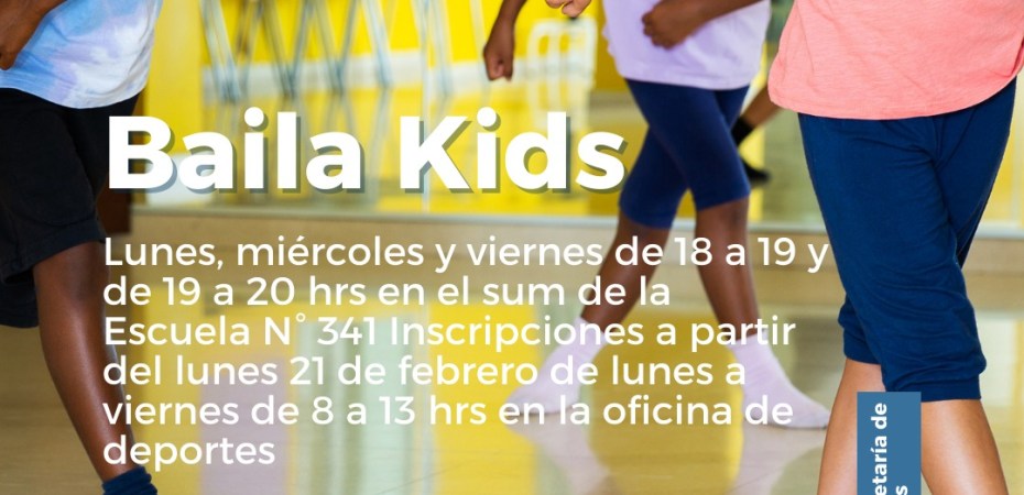 A partir de este lunes 21 de febrero comenzará la inscripción para Baila Kids, una nueva actividad que propone la Subsecretaria de deportes.