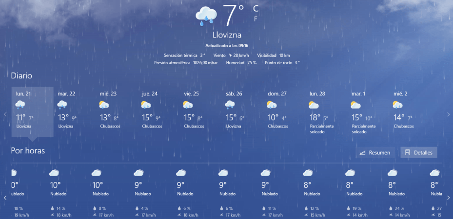 La máxima pronosticada para hoy no supera los 11 Grados. Asique llevar siempre algo de abrigo y si vamos a salir llevar algo que pare la lluvia.