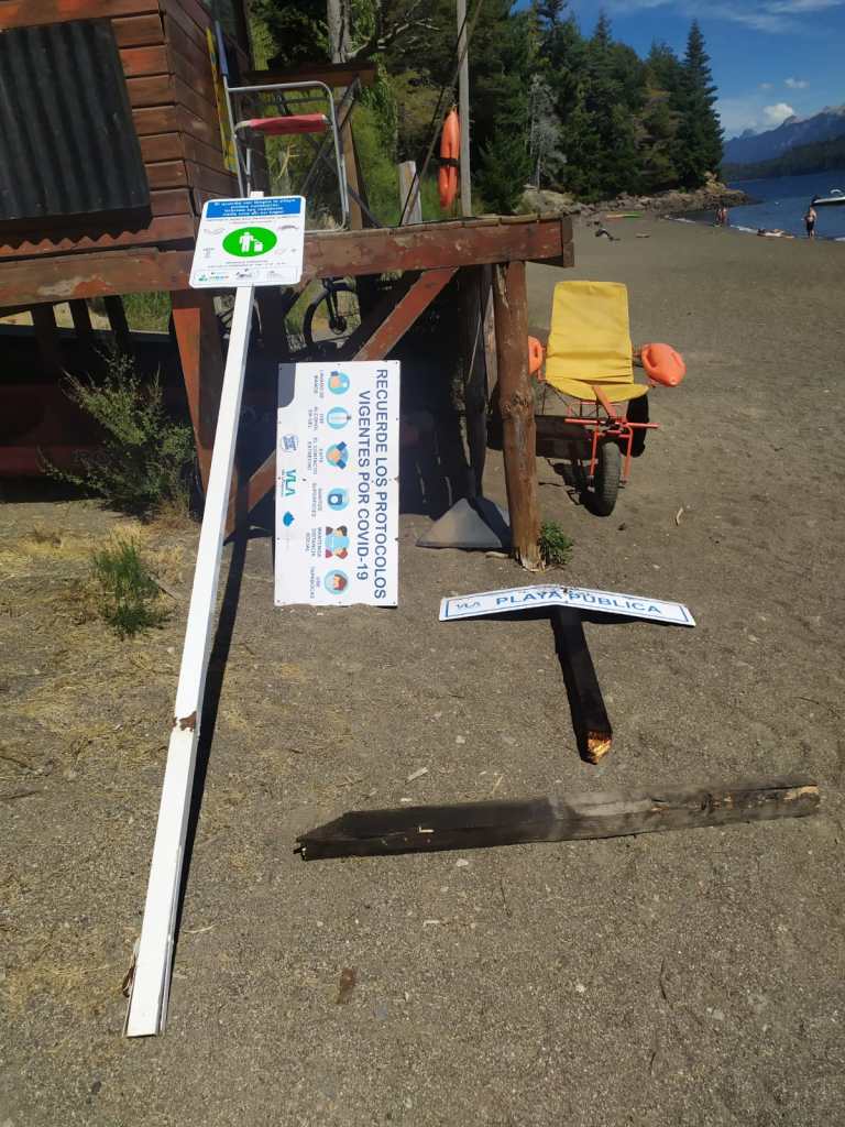 Desconocidos se dedicaron a romper y desarmar cartelería indicativa en las playas y también tachos de basura, preocupación en el área de protección civil por los elementos que hacen a la seguridad de los asistentes a las playas.