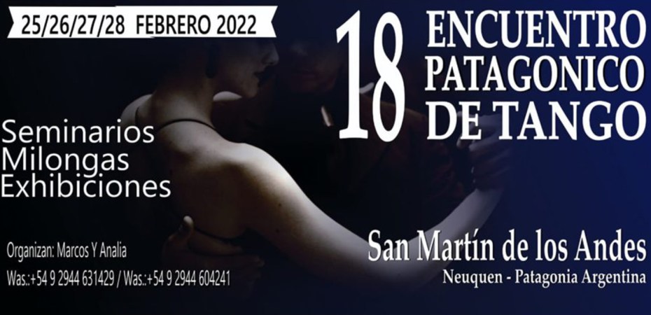Los días 26, 27 y 28 de febrero próximo se realizará el 18° Encuentro Patagónico de Tango en San Martín de los Andes. La cita musical tendrá lugar en el Salón Usos Múltiples del Arenal.