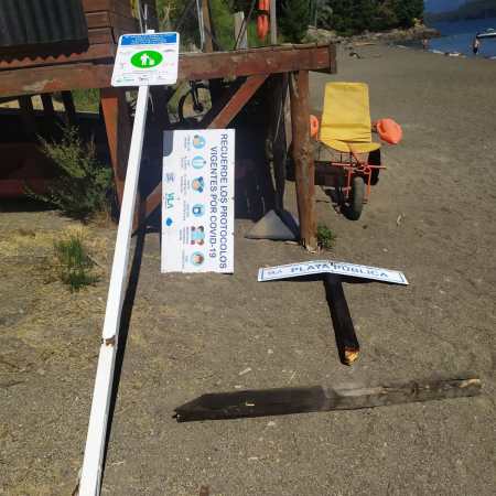 Rompen cartelería y tachos de residuos en las playas de manzano.
