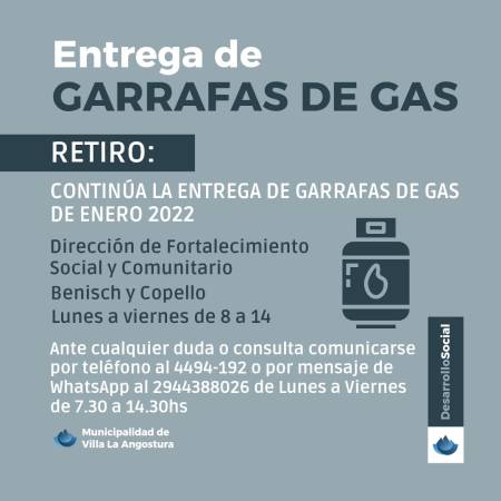 Entrega de garrafas de gas, hoy comienza en desarrollo.