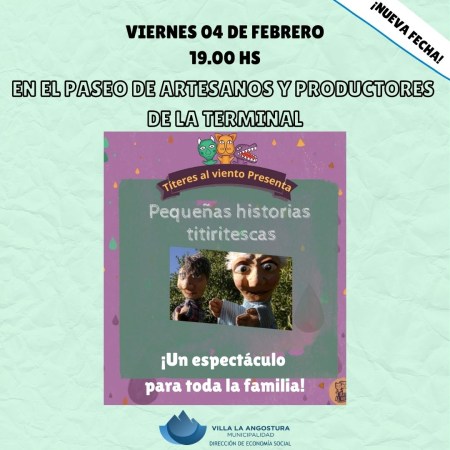 Paso para hoy 4 de febrero a las 19, el espectáculos de Títeres en el paseo de la terminal.