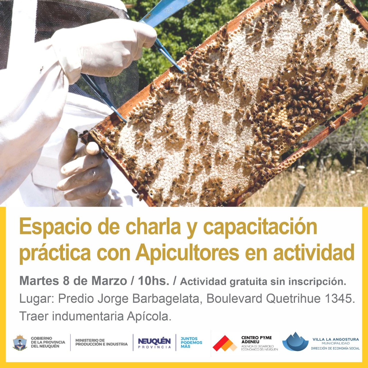Sin inscripción previa, en el Predio Barbagelata, Boulevard Quetrihue 13456, » Espacio de Charla y Capacitación práctica, con apicultores en actividad» (Los participantes deberán llevar indumentaria apícola).