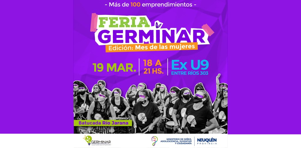 El sábado 19 de marzo se realizará una nueva Feria Germinar en el patio de la ex U9 (Entre Ríos 303) de 18 a 21. Esta edición está dedicada al “Mes de las Mujeres”, por lo que la feria contará con propuestas y acciones en pos de conmemorar el Día de la Mujer.