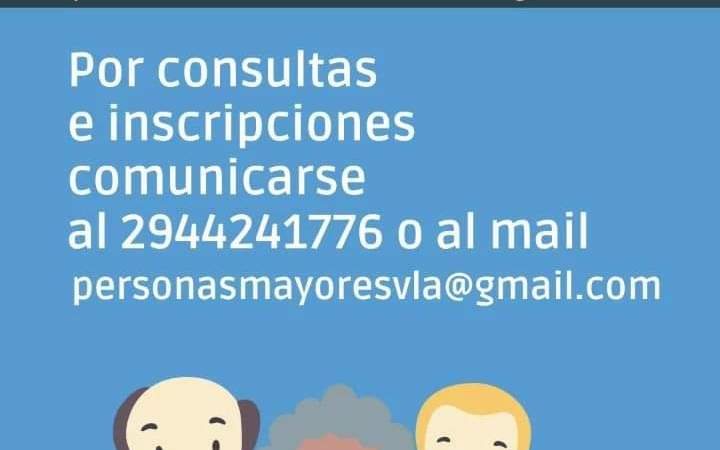 Por consultas se pueden comunicar al teléfono del Área 2944 241776 de 8 a 16hs de lunes a viernes o al mail personasmayoresvla@gmail.com