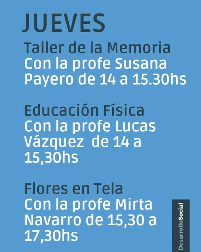 Taller de la Memoria Con la profe Susana Payero de 14 a 15.30hs