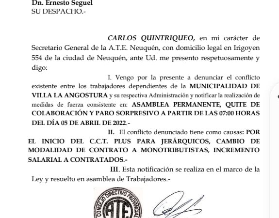 En leguaje plano, el conflicto entre los empleados municipales y el gobierno entro en una escalada donde los trabajadores reclaman por la iniciación del CCT (Convenio Colectivo de Trabajo) y además por una serie de puntos entre los que se incluyen las modalidades de contratación y los aumentos para contratados.