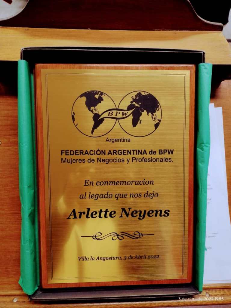 Luego de un visita por los distintos rincones de este Museo que recomendamos visitar y disfrutar, la flamante Presidente de Villa la Angostura, Kayleigh Ahlbach y el Director Cultural de la Asociación Matias Vivot, recibieron de las manos de la Presidente de la Federación Argentina BPW Olga Ahumada una placa conmemorativa al legado que dejo Arlette Neyens en esta comunidad, que para quienes la conocimos en vida siempre fue sinónimo de trabajo, empuje y ganas de construir para el otro.