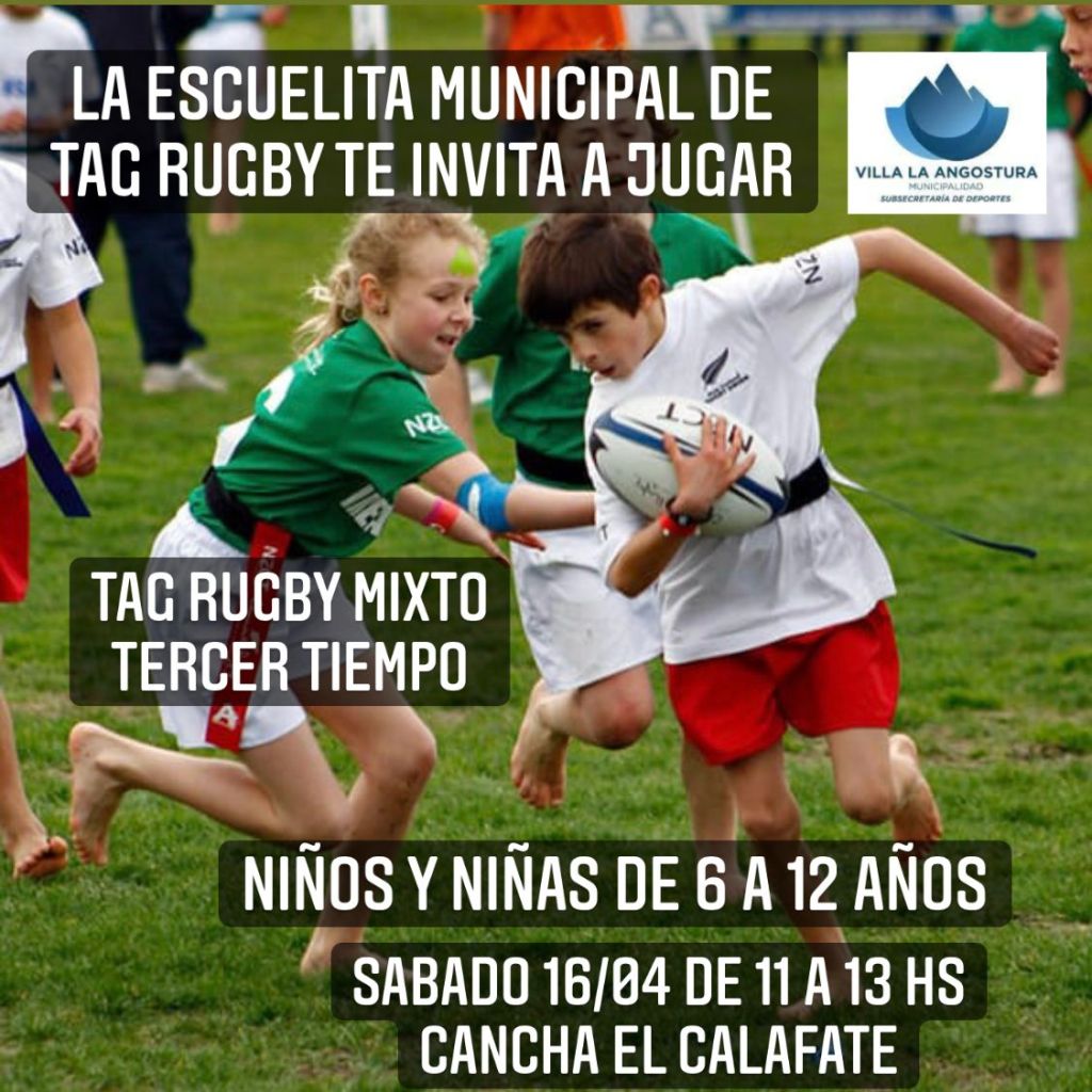 La escuelita municipal de rugby TAG invita el sábado 16/4 en la cancha del calafate a disfrutar de una jornada donde los niños y niñas de 6 a 12 año jueguen esta divertidísima modalidad del rugby.