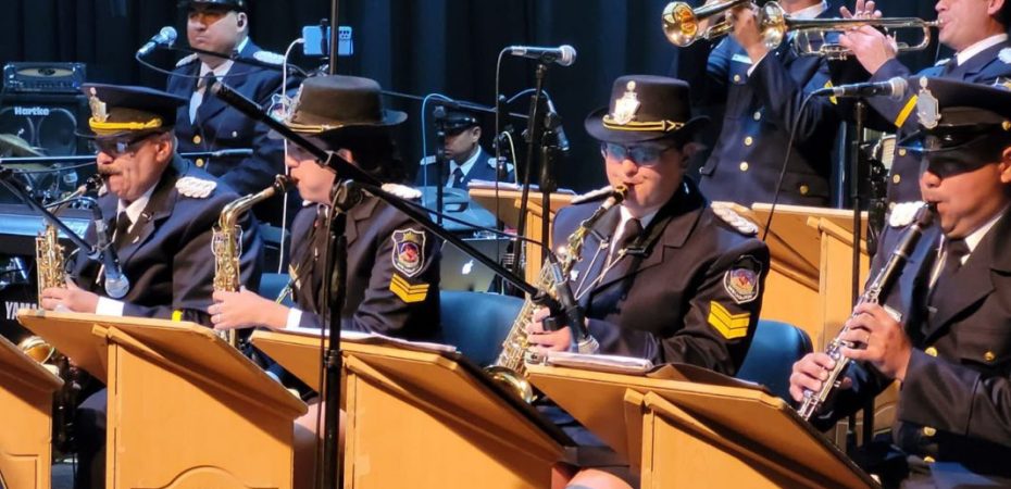 Con un amplio repertorio que incluyó temas clásicos de los 80, ritmos caribeños y hasta cumbia y cuarteto, la Banda de Música de la Policía del Neuquén “Cnel. Manuel José Olascoaga”, se presentó anoche a sala llena en el Cine Teatro Español.