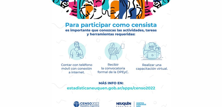 La dirección provincial de Estadística y Censos informa que sigue abierta la convocatoria para que aquellas personas que estén interesadas en formar parte de la estructura censal puedan inscribirse. Podrán hacerlo ingresando en el siguiente link: https://www.estadisticaneuquen.gob.ar/apps/censo2022/