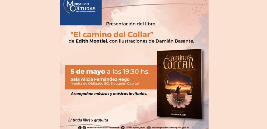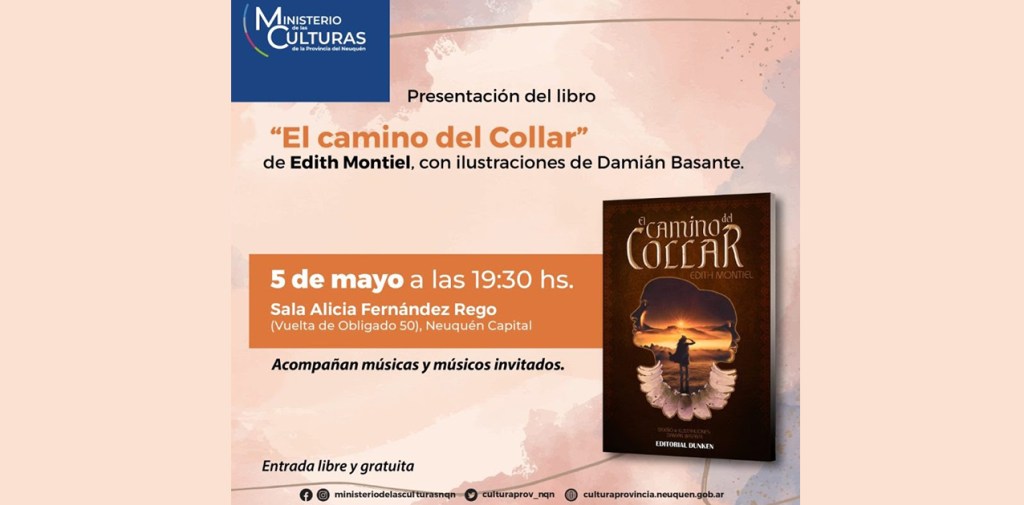 El ministerio de las Culturas invita la presentación del libro “El camino del collar” de la autora Edith Montiel, diseñado e ilustrado por Damián Basante y publicado por ediciones Dunken. La actividad será lugar el jueves 5 de mayo a las 19.30 en la Sala Alicia Fernández Rego (Vuelta de Obligado 25). La entrada es libre y gratuita, y habrá acompañamiento musical a cargo de artistas invitados para la ocasión.