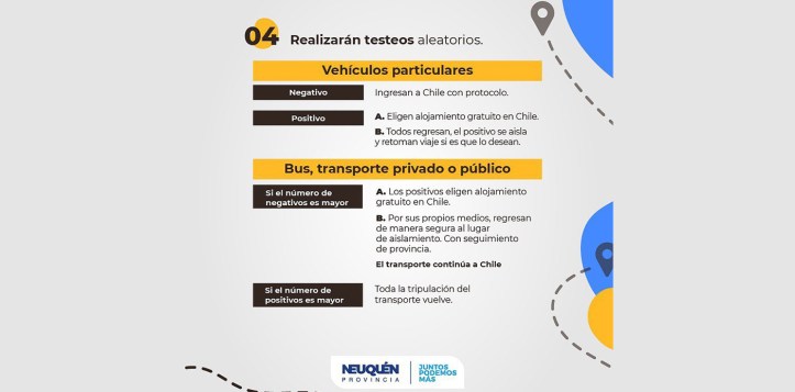 A raíz de la apertura de los pasos fronterizos de Cardenal Samoré y Pino Hachado el 1 de mayo, el gobierno de la Provincia del Neuquén, a través del ministerio de Turismo, informó sobre los requisitos para quienes deseen ingresar a Chile.