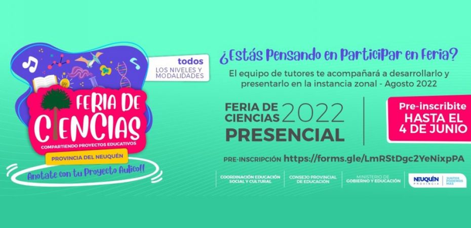 El ministerio de Gobierno y Educación y el Consejo Provincial de Educación invitan a las y los docentes de todos los niveles y modalidades a preinscribirse para participar con sus proyectos áulicos en la instancia zonal de Feria de Ciencias.