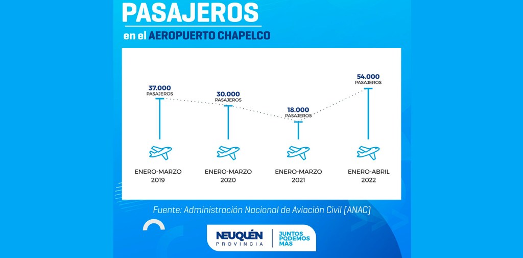 En el caso de Chapelco debido a la inversiones realizadas en el Aeropuerto que permiten un arribo de mayor cantidad de aviones y de mayor tamaño, superaron los pasajeros transportados en 2019.