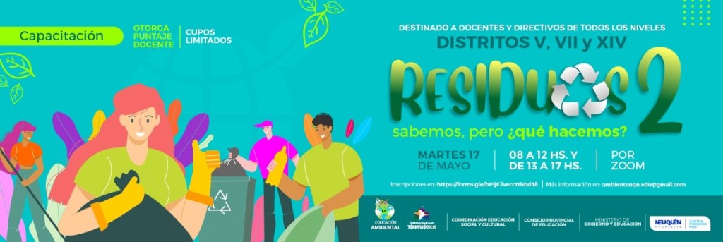 El ministerio de Gobierno y Educación y el Consejo Provincial de Educación (CPE) invitan a la comunidad educativa a participar de la jornada de capacitación “Residuos 2: sabemos, pero ¿qué hacemos?” que se realizará el martes 17 de mayo a través de la plataforma digital Zoom.
