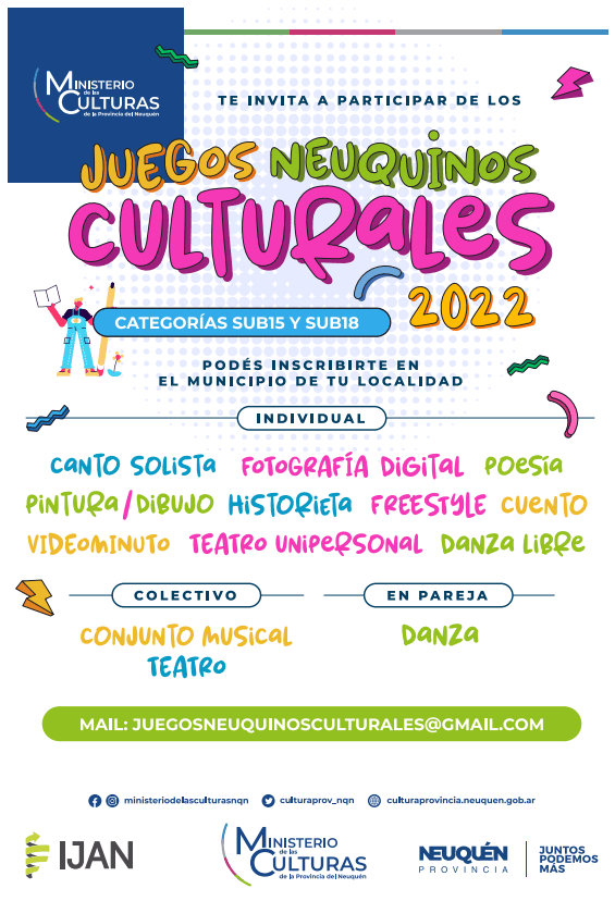 Cabe mencionar que los Juegos Culturales Neuquinos convocan a jóvenes de entre 12 y 18 años de edad a expresarse en diversas disciplinas.