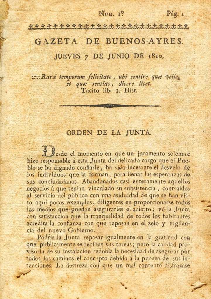 Fue Mariano Moreno, secretario de la Primera Junta, quien fundó La Gazeta de Buenos Ayres con el objetivo de comunicar a la sociedad los actos del gobierno y las noticias exteriores.