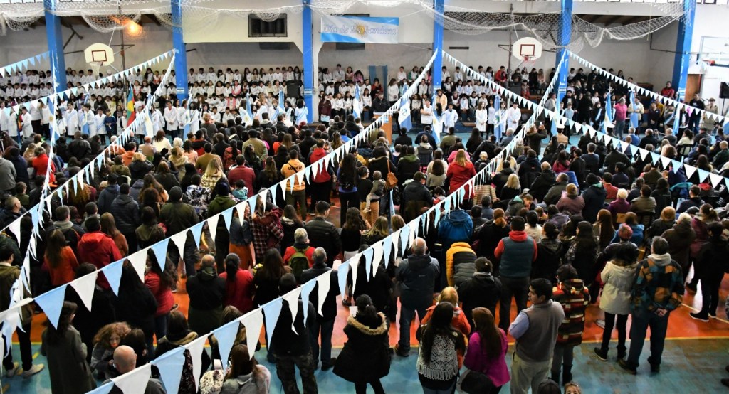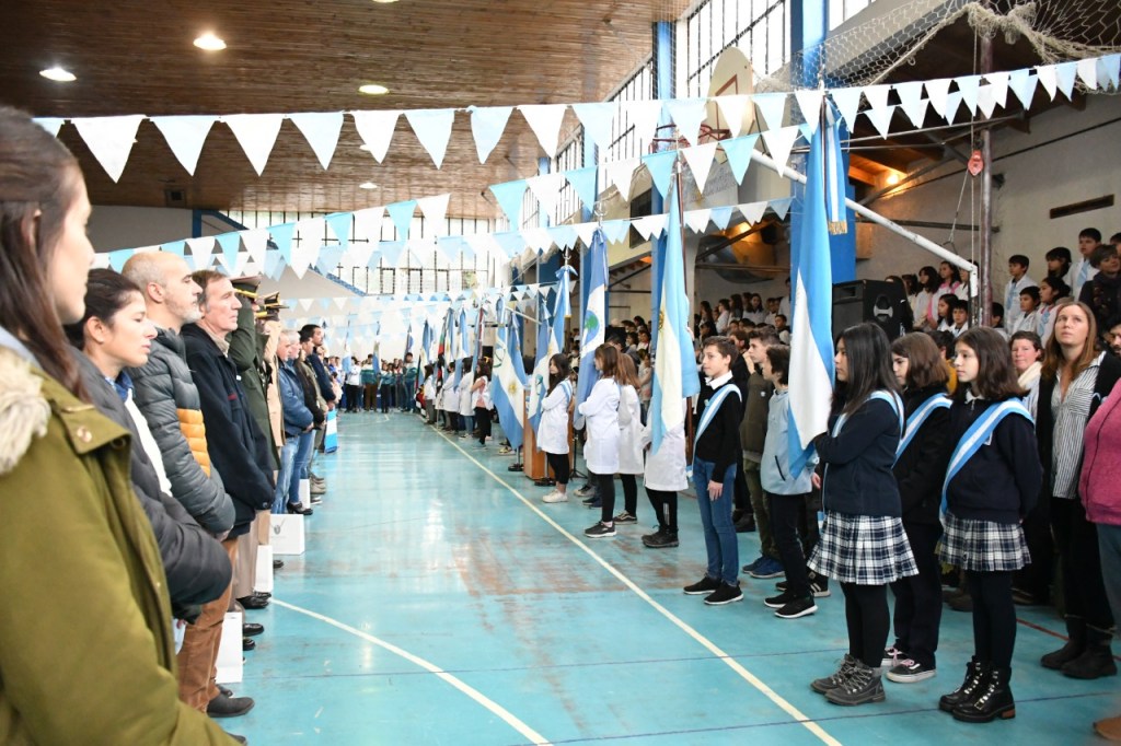 Celebrando y recordando a Manuel Belgrano creador de la Bandera Nacional, y con el recinto del Gimnasio Municipal Don Enrique Barbagelata colmado de vecinos, se llevó a cabo uno de los actos más sentidos del calendario.