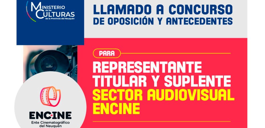 El Ministerio de las Culturas informa que a partir del 21 de junio al 6 de julio de 2022 queda abierto el llamado a Concurso de Oposición y Antecedentes para designar el representante del sector audiovisual titular y suplente, que formará parte del Consejo Directivo del ENCINE.