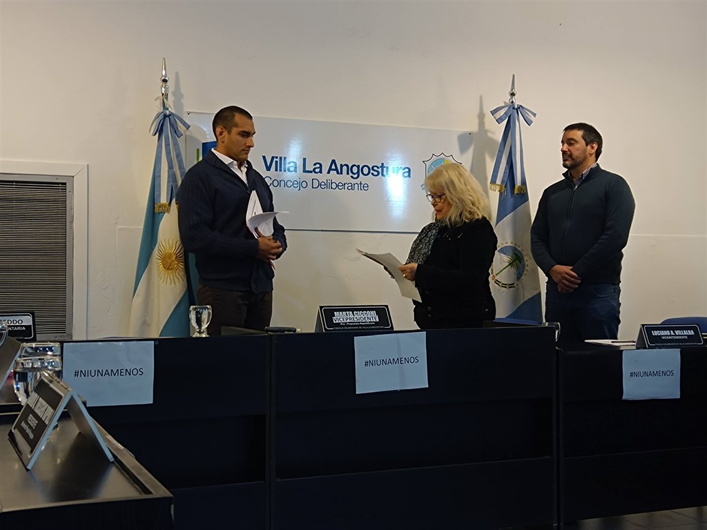 El Joven deportista y profesor de Educación Física de la localidad, que actualmente se desempañaba como coordinador del área de Juventud del municipio, asumió en una sesión que a pesar de la dificultad de los temas a tratar y del alto impacto político de los mismo el flamante concejal se mostro seguro e informado sobre lo que iba a tratar o decir.