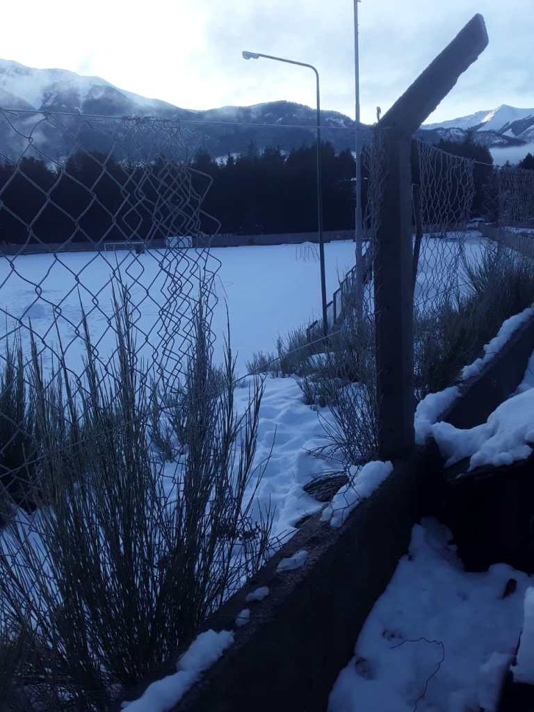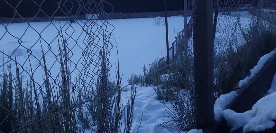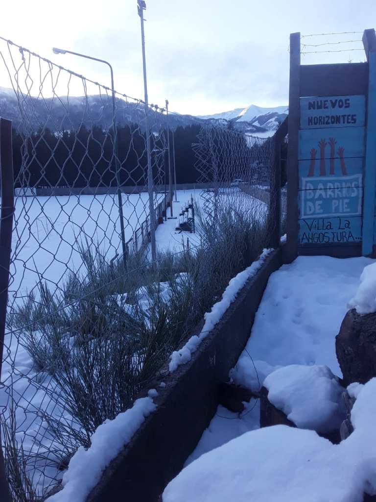 Ni la nieve ni el frio parece detener a los que se dedican a romper el cerco de la cancha que utilizan la mayoría de los chicos y chicas de la localidad que hacen deporte de equipo.