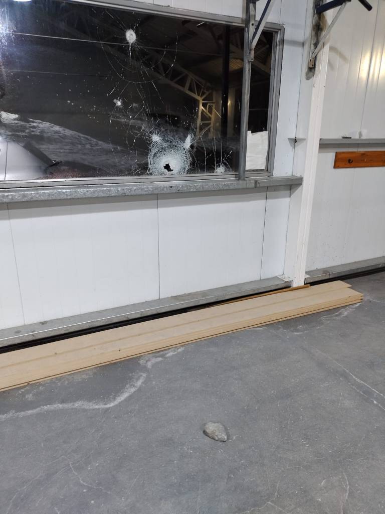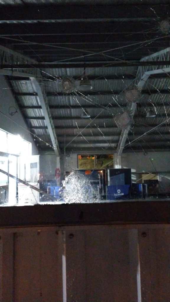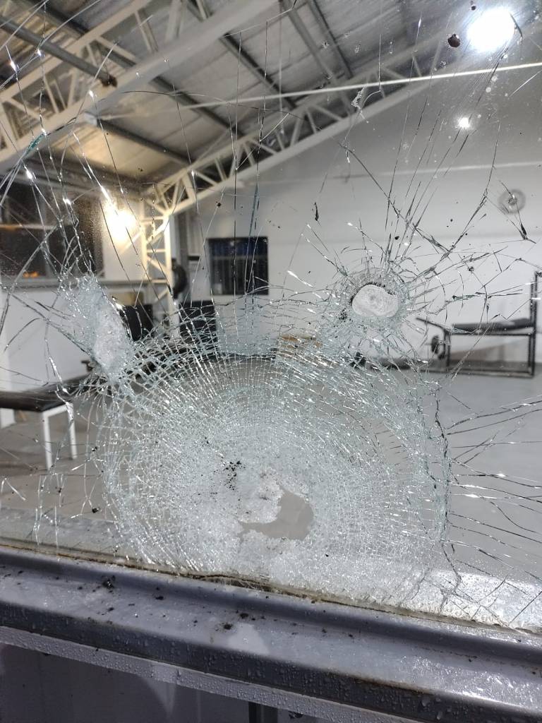 Los hechos ocurridos en la madrugada del sábado, dejaron varios vidrios y otros elementos del gimnasio destruidos a piedrazos.