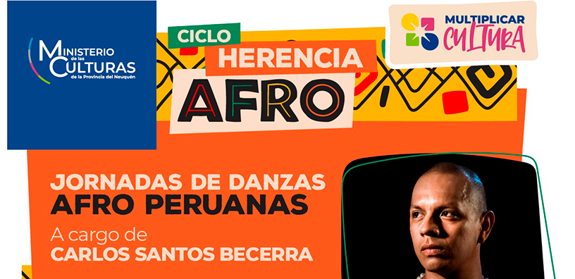 El ministerio de las Culturas invita a las dos Jornadas de Danzas Afro Peruanas a realizarse los días viernes 5 y sábado 6 de agosto a cargo del maestro Carlos Santos Becerra, artista del Perú. Las mismas finalizarán con una muestra y habrá además un conversatorio con la temática “Afrodescendencia de nuestro territorio y de todo el territorio latinoamericano”.