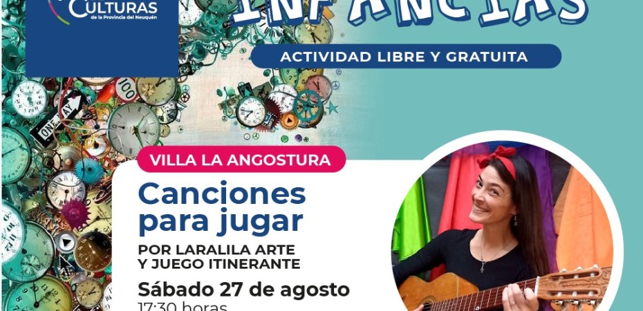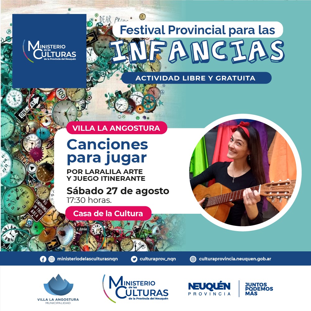 Este sábado 27 de agosto a las 17:30hs la Subsecretaría de Cultura en el marco de las actividades que realiza el Ministerio de las Culturas, organiza este espectáculo para las Infancias ” Canciones para jugar”.